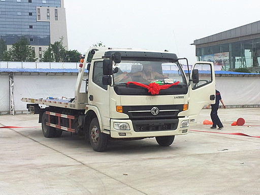 圖為重慶一客戶在我廠 定購(gòu)的一輛東風(fēng)凱普特平板一拖二清障車送車前在廠區(qū)做準(zhǔn)備