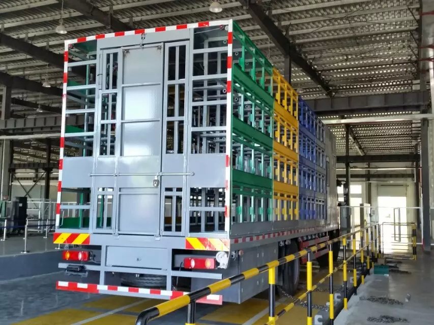 該車可裝固定蜂箱120箱, 中間走道可堆放130箱,貨箱9.6米,帶整體升降平臺,蜜蜂踏板液壓開啟,3000磅吊機,多功能后爬梯,床鋪,太陽能發電裝置,可根據用戶需求,加裝灶具,洗浴等設施。