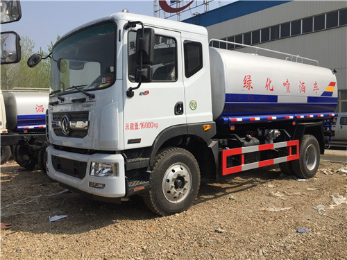 罐體用4MM碳鋼板制作,罐內隔板具有防波作用,以減低汽車行駛時罐體液體的沖擊。整車帶一個專用灑水泵(垂直最大吸程6米),灑水寬度14米,射程28米。多功能灑水車配備2個前沖(噴)(能將路面泥巴、塵土、垃圾沖干凈);2個后灑(能均勻地將水灑在路面,一次灑水寬度14米)、2個側噴(花灑)(能均勻地將路旁綠化帶澆灌)、帶1個后工作平臺,平臺上安裝1個綠化灑水高炮(灑水炮可全方位旋轉,可連續調成直沖狀、大雨、小雨、毛毛雨,霧狀可調節沖洗高大樹木),引水時間<5min,流量90m3/h。帶1個消防接頭,帶1個自流閥,1個過濾裝置、人性化爬梯及側防護欄,安裝灑水音樂喇叭。
