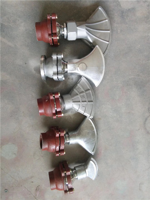 還有一種就是:廣式鴨嘴噴頭,又稱:廣式灑水噴頭。因最早發明這款噴頭的人是廣東人,所以命叫廣式鴨嘴噴頭,廣式鴨嘴噴頭的特別之處是灑水度寬廣,噴頭口寬,單個的廣式鴨嘴噴頭的重量要比一般的灑水車噴頭重,內絲,鋁合金材質,可以直接連接在環衛灑水車管路上,安裝簡便快捷。