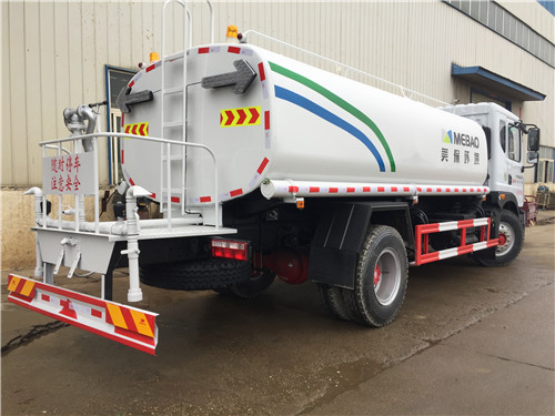 環衛灑水車前噴頭位置較低,靠近地面,噴灑壓力較大,可用于沖洗路面;后噴頭位置較高(環衛灑水車后噴頭一般左右各安裝一個),灑水面較寬,可用于公路施工灑水,使用后噴頭時,應將前噴管關閉;使用可調噴頭灑水時,灑水寬度可根據需要調整。灑水寬度越寬,中間重疊量越少,灑水密度越均勻。