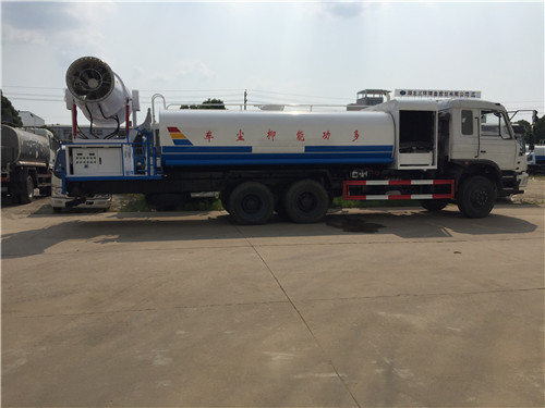 湖北泰茂建材自提一臺東風12噸多功能抑塵車,是多功能抑塵車中銷量最好的一款,罐體可裝水12噸,霧炮射程70米,兼具灑水車全部功能,仿天錦駕駛室,高配置,低價格,百公里綜合油耗26升左右,該車免征環保齊全,無需繳納購置稅。