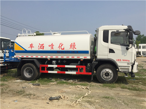 大運灑水車配置有大功率灑水泵,灑水泵帶自吸功能,能垂直吸6米,吸力非常大,還帶有消防接水口,能快速接水,灑水裝置有前沖,后灑,側噴,后工作平臺,平臺上安全綠化灑水水炮,其灑水車寬度14米,水炮射程可達30米,綠化灑水水炮可旋轉360°,還可調節成水柱裝,霧狀,大中小可任意調解,射程非常遠。