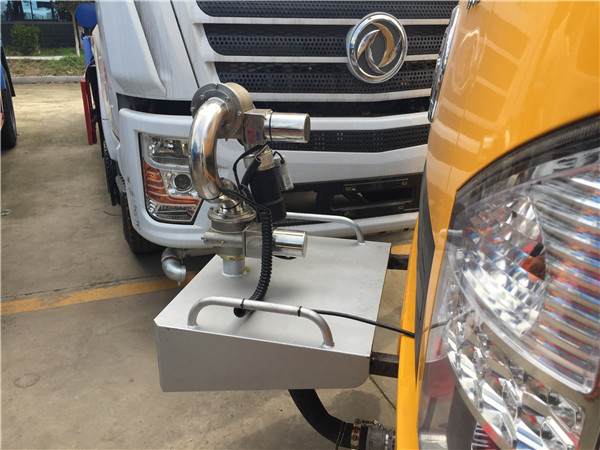 除了改變前沖噴頭的形式外,當灑水車標準配備三彎前沖時,受到底盤影響,如:采用福田小卡底盤時,由于灑水車前部過低,一般會將前沖噴頭位置改裝在駕駛室和罐體下方,俗稱“腰沖”,可有效避免上坡或路況差時對噴頭產生沖擊而造成的損壞。還可根據客戶要求對前沖噴頭加裝氣動或電氣控球閥,以方便司機不出駕駛室即可操控灑水噴頭的開關。