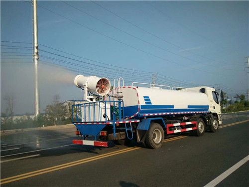 灑水車專用性能:具有前沖后灑、側噴(更換噴頭后變為側花灑)、后置式工作平臺(帶踏梯,四周有安全護欄)、平臺上設置有高壓水炮(可360°旋轉,可調成柱狀,也可調成霧狀,可調成:直沖狀、大雨、中雨、小雨、毛毛雨)。配備全國評比第一的杭州威龍專用灑水泵,選億豐泵或金龍泵,雜物過濾網,國標通用65型消防接口(可通過消防栓加水)、1套自流球閥系統(可自吸自排),2根引水鋼絲膠管(帶陰陽快速接頭),水位計。