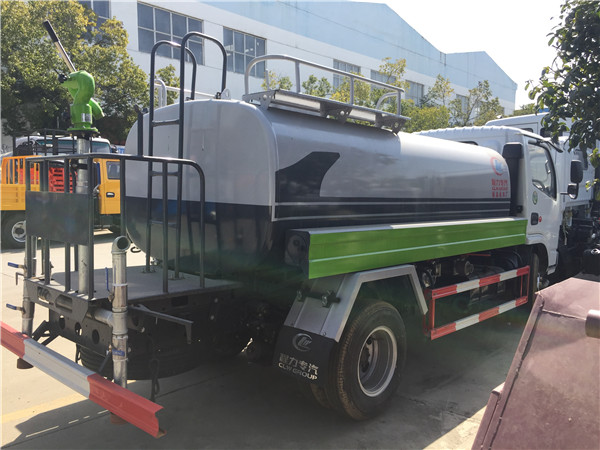 灑水車配置說明:東風多利卡5噸灑水車是一款綠化環衛多功能灑水車,主要適合于城市、小區、工廠的小型綠化環衛用。前沖,后灑,帶側噴、帶后工作平臺、平臺上安裝綠化灑水高炮(高炮可360°旋轉,可連續調成直沖狀、大雨、小雨、毛毛雨),配備專用大功率灑水泵,帶消防接頭,帶自流閥,帶自吸功能。垂直吸程≥6米,灑水寬度≥14米,高炮射程≥28米。