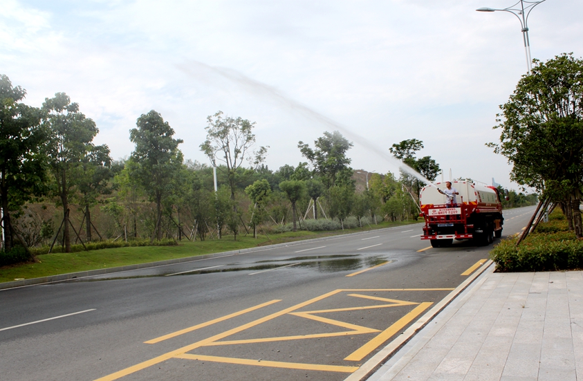 路面保潔采用了環(huán)衛(wèi)管制,城管協(xié)同的方式,一方面新購進了灑水車來降塵保潔,一方面用職能部門來制約管理公共環(huán)境。