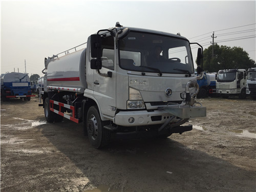 我廠生產的東風天錦單橋15噸抑塵車根據罐體容積不同,采用4-6mm厚武鋼Q235碳鋼板制作,罐體內置防浪板,避免車輛急剎時液體前涌造成的安全隱患,罐體頂部開有人孔。人孔既可以作為工作人員進行罐內檢修的進出口,也可以作為加水孔用于向罐內加注水;隨車配備大功率專用灑水泵(標配隨州億豐灑水車,選配杭州威龍灑水泵),比同類灑水泵壓力大、吸程遠、使用壽命長,克服其他灑水泵易被雜物纏住、壓力小、吸水慢的缺點。整車帶前沖(噴)、后灑、側噴、罐體后部帶工作臺,平臺上安裝綠化高壓灑水炮。灑水炮可全方位旋轉,可連續調成直沖狀、開花狀、大雨、小雨、毛毛雨、半霧狀水流,以適合不同狀況下的需求。