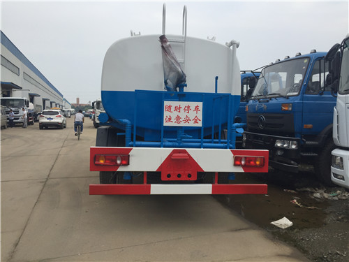 功能說明: 灑水車前裝有鴨形噴嘴或圓頭沖嘴,后面裝有圓柱開灑水噴嘴或蓮蓬頭噴嘴,后部有一工作平臺,裝配有水炮。帶消防接頭,帶自流閥,帶自吸功能,選配20米綠化消防卷盤。
