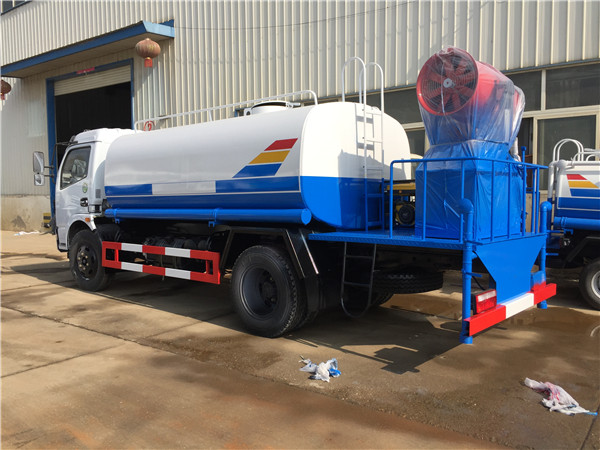 東風福瑞卡灑水車前裝有鴨形噴嘴或圓頭沖嘴,灑水車后面裝有圓柱開灑水噴嘴或蓮蓬頭噴嘴,后部有一工作平臺,裝配有水炮。后部還可裝8個噴嘴(選裝)噴水器一般用于沖洗街道,起除塵和降溫作用,其噴水器可以用調節噴嘴螺紋的方法改變噴水器的噴灑方向和角度,高射水炮可以用于城鄉園林綠化及應急消防。蓮蓬嘴可以澆落路中間噴水器沖起的灰塵,起到清潔空氣的作用。