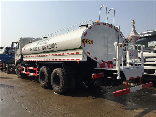 東風天龍18噸灑水車底盤配置(底盤型號:DFL1250A8):6*4驅動(后雙橋),配備美觀大氣的東風天龍平頭單排液壓翻轉式駕駛室,康明斯245馬力、直列六缸、增壓中冷柴油發動機,7噸前橋,雙10噸后橋,載重能力更大;電阻加熱冷啟動裝置,全鋼350L燃油箱,機械油門踏板,動力轉向,6檔變速箱,11.00-20尼龍胎,排氣制動,帶空調;綜合燃料消耗量29.2L/100km,50km/h空載等速燃料消耗量18.9L/100km。
