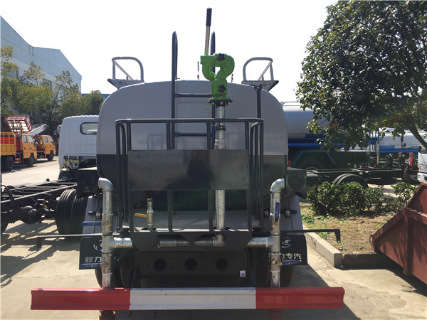 灑水車配置說明:東風多利卡5噸灑水車是一款綠化環衛多功能灑水車,主要適合于城市、小區、工廠的小型綠化環衛用。前沖,后灑,帶側噴、帶后工作平臺、平臺上安裝綠化灑水高炮(高炮可360°旋轉,可連續調成直沖狀、大雨、小雨、毛毛雨),配備專用大功率灑水泵,帶消防接頭,帶自流閥,帶自吸功能。垂直吸程≥6米,灑水寬度≥14米,高炮射程≥28米。