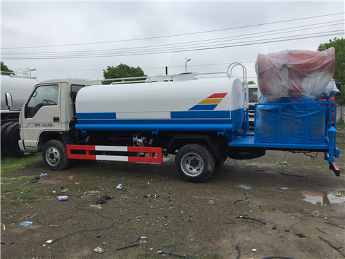 福田5噸不上牌抑塵車改裝配置:罐體用4MM碳鋼板制作,罐內(nèi)隔板具有防波作用,以減低抑塵車行駛時罐體液體的沖擊。整車帶一個專用抑塵泵(垂直最大吸程6米),灑水寬度14米,射程28米。抑塵車配備2個前沖(噴)(能將路面泥巴、塵土、垃圾沖干凈);2個后灑(能均勻地將水灑在路面,一次灑水寬度14米)、2個側(cè)噴(花灑)(能均勻地將路旁綠化帶澆灌)、帶1個后工作平臺,平臺上安裝1個綠化灑水高炮(灑水炮可全方位旋轉(zhuǎn),可連續(xù)調(diào)成直沖狀、大雨、小雨、毛毛雨,霧狀可調(diào)節(jié)沖洗高大樹木),引水時間<5min,流量90m3/h。帶1個消防接頭,帶1個自流閥,1個過濾裝置、人性化爬梯及側(cè)防護(hù)欄,安裝灑水音樂喇叭。