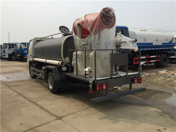 福田時代5噸抑塵車:福田時代底盤,軸距3360mm,安徽全柴490EGR發動機,7.00-16尼龍胎,帶暖風,氣剎(或油剎),不上牌抑塵車價格最低。▲垂直吸程>7米,灑水寬度>14米,射程>28米。前沖(噴)):(能將路面泥巴、塵土、垃圾沖干凈);后灑(能均勻地將水灑在路面,灑水寬度>14米)、前側噴(花灑)(均勻地將路旁綠化帶澆灌)、后工作平臺,平臺上裝綠化灑水炮(炮有大雨、中雨、毛毛雨、霧狀可調節沖洗高大樹木),灑水泵,消防接頭,自流閥,過濾裝置、人性化爬梯及側防護欄,音樂喇叭。