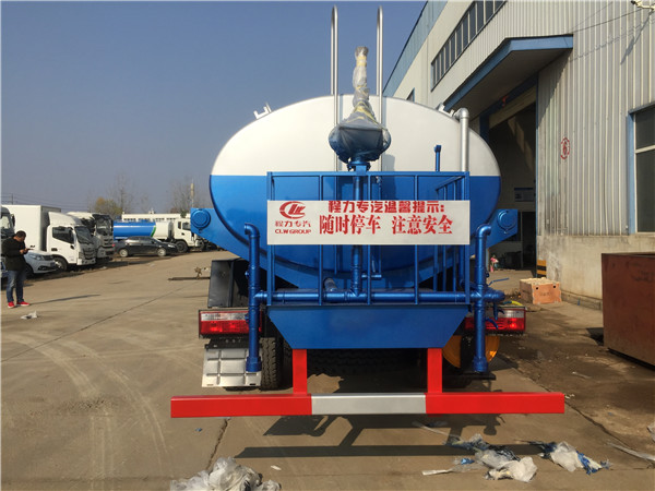 2、后灑:利用裝于車后部的兩個噴嘴將水噴成均勻的扇表形面,向路面灑水;后灑可達10米寬。
