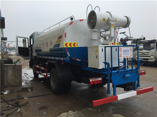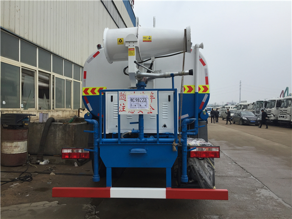 抑塵車工藝精良經久耐用,前噴后灑,前裝有鴨形噴嘴或圓頭沖嘴,后面裝有圓柱開灑水噴嘴或蓮蓬頭噴嘴,后部有一工作平臺,裝配有高壓水炮。后部還可裝8個噴嘴(選裝)噴水器一般用于沖洗街道。前沖:寬7米 前沖:寬7米
