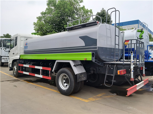 東風天錦灑水車標配前沖(噴)后灑,灑水寬度≥14米,帶側噴,罐體后帶工作平臺,平臺上安裝綠化灑水炮,灑水炮可全方位旋轉,射程≥28米,可連續調成直沖狀、大雨、小雨、毛毛雨,帶安全護欄,配備專用灑水泵,