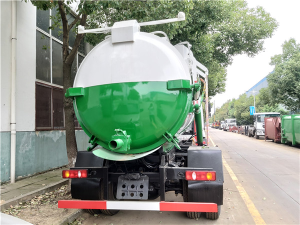 罐式餐廚垃圾車的外觀和吸污車類似,增加了掛桶提升機和罐體頂部開口,便于裝載桶裝餐廚垃圾。也可以選裝真空系統具備抽吸功能,在餐廚垃圾車因場地受限無法駛入的工作環境或有大型垃圾料池的情況下可利用真空吸污裝置直接將餐飲垃圾吸入罐體。一般內置濾網,罐體后門可開啟,可舉升自卸。