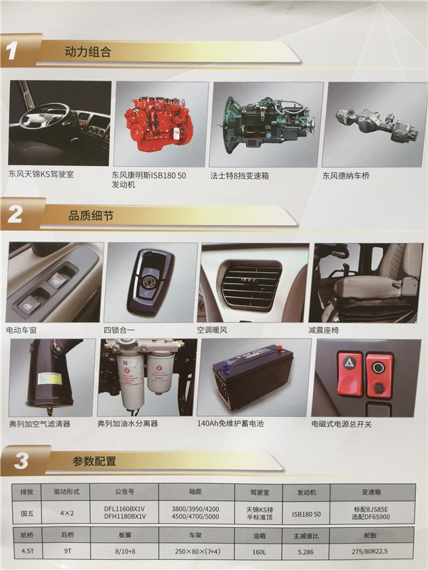 新款東風專底D3灑水車采用東風原廠底盤,御虎平頂排半駕駛室,康明斯ISB190 50國六190馬力發動機,軸距4500mm,10.00R20鋼絲胎,帶原廠ABS。