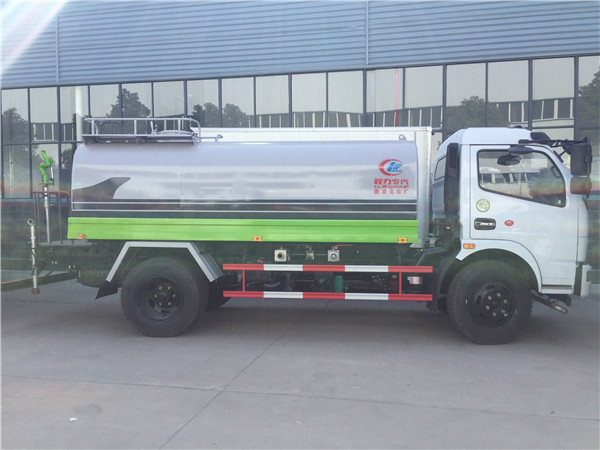 東風5噸不上牌灑水車改裝配置:罐體用4MM碳鋼板制作,罐內隔板具有防波作用,以減低灑水車行駛時罐體液體的沖擊。整車帶一個專用灑水泵(垂直最大吸程6米),灑水寬度14米,射程28米。灑水車配備2個前沖(噴)(能將路面泥巴、塵土、垃圾沖干凈);2個后灑(能均勻地將水灑在路面,一次灑水寬度14米)、2個側噴(花灑)(能均勻地將路旁綠化帶澆灌)、帶1個后工作平臺,平臺上安裝1個綠化灑水高炮(灑水炮可全方位旋轉,可連續調成直沖狀、大雨、小雨、毛毛雨,霧狀可調節沖洗高大樹木),引水時間<5min,流量90m3/h。帶1個消防接頭,帶1個自流閥,1個過濾裝置、人性化爬梯及側防護欄,安裝灑水音樂喇叭。