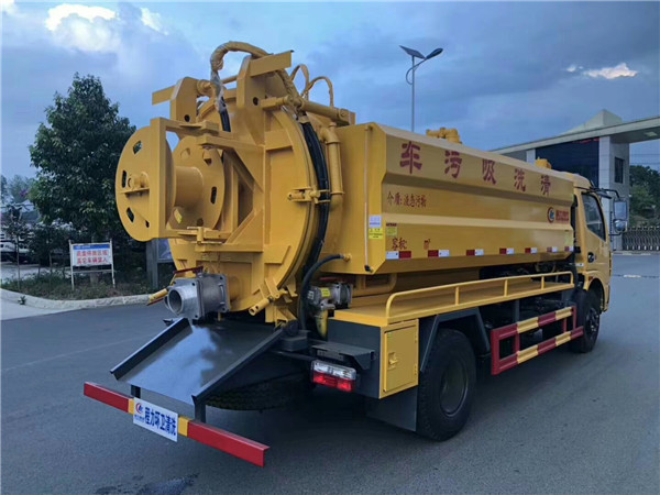 藍牌清洗吸污車分為水罐和吸污罐,清水罐置入罐體兩側,容積2.4方,通潔高壓清洗泵最大壓力24兆帕,170流量,采用全功率夾心取力器驅動,三通高壓分配閥內芯為不銹鋼制作。配10個不同型號的高壓噴嘴,并印有編號和使用壓力,油泵和馬達,多路閽均采用知名品牌。吸污罐4立方,采用億豐真空泵,罐體尾部100自流口(可根據用戶要求安裝2個),6米吸污管,吸污罐與水廂活動接頭相連,可以用吸污罐裝水做單一的高壓清洗用。