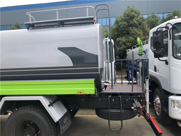 灑水車質量前噴頭位置較低,靠近地面,噴灑壓力較大,可用于沖洗路面;后噴頭位置較高(灑水車后噴頭一般左右各安裝一個),灑水面較寬,可用于公路施工灑水,使用后噴頭時,應將前噴管關閉;使用可調噴頭灑水時,灑水寬度可根據需要調整。灑水寬度越寬,中間重疊量越少,灑水密度越均勻。