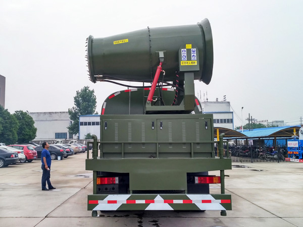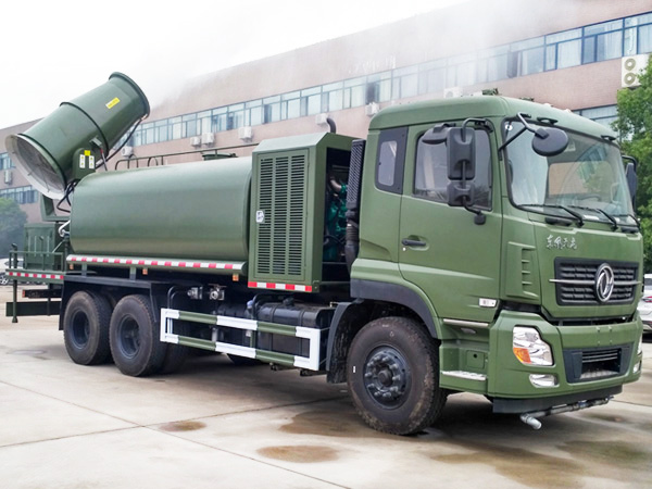 東風天龍16方多功能抑塵車,將服務于鐵道部或其他更多領域。主要是火車運送煤炭,用于對每節火車上的煤炭進行固化,形成保護膜,減少污染。噴灑可360度旋轉,同時具備灑水車功能,后平臺高炮可同時進行旋轉。可電子遙控操作。