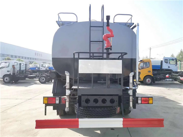 歐曼灑水車罐體下面有灑水車進水.出水以及連同的管道,管道排布整齊,一眼就能看清走向,管道到采用一次性成型鋁合金管。防腐能力強,不生銹,管道外接口處有防護欄,紅白兩色非常明顯,后工作平臺上面也有紅白兩色的防護欄,防護欄上面裝有后尾燈,和上牌架,后工作平臺上裝有簡易的爬梯,使用耐用,后工作平臺上面裝有警示牌,上面寫有隨時停車注意安全的字樣。