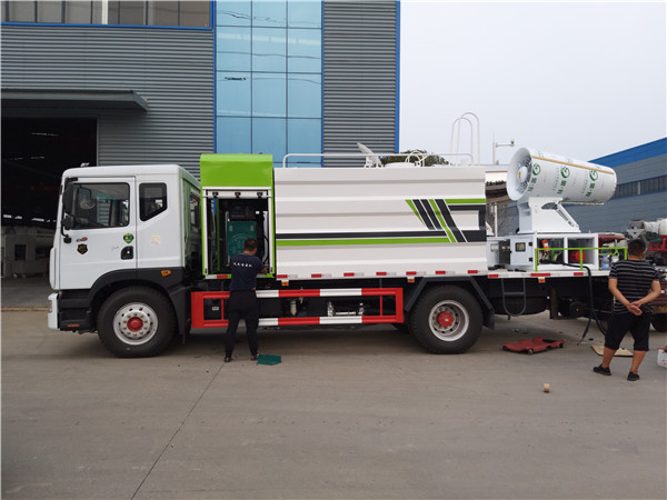 礦山10噸抑塵車的抑塵效果卻十分驚人,工作效率約為普通灑水車的30倍。水箱中的水經(jīng)過霧化后,由高壓風(fēng)機(jī)噴出。相比普通灑水車噴出的水流,降塵噴霧車可噴射微米級(jí)水霧,其吸附力也增加了3倍,耗水量卻降低了70%。