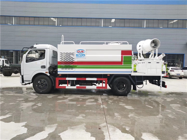 5方東風福瑞卡抑塵車選配50米噴霧機達到除塵效果。霧炮機是根據(jù)風送原理,先使用進口高壓泵、微細霧化噴嘴將水霧化,再利用風機風量和風壓將霧化后的水霧送到較遠距離,使得水霧到達較遠距離同時能夠覆蓋更大面積,水霧與粉塵凝結(jié)后降落,從而達到降塵目的。