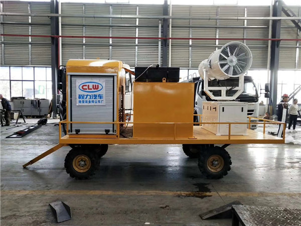 多功能抑塵車前裝有鴨形噴嘴或圓頭沖嘴,后面裝有圓柱開灑水噴嘴或蓮蓬頭噴嘴,后部有一工作平臺,裝配有水炮。后部還可裝8個(gè)噴嘴(選裝)噴水器一般用于沖洗街道,起除塵和降溫作用,其噴水器可以用調(diào)節(jié)噴嘴螺紋的方法改變噴水器的噴灑方向和角度,高射水炮可以用于城鄉(xiāng)園林綠化及應(yīng)急消防。蓮蓬嘴可以澆落路中間噴水器沖起的灰塵,起到清潔空氣的作用。