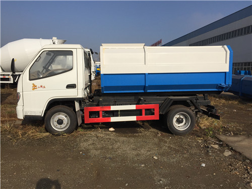 4、掛桶垃圾車主要用于:市政、大型廠礦部分運輸灰、砂、石、土等建筑材料等,帶液壓系統,舉升油制缸2支,自吊上放下,工作循環。采用優質鋼板,底部可加裝不銹鐵底板,保證自卸時的平滑性,可根據溫度加裝防冰凍設置,保障車輛的正常運行。