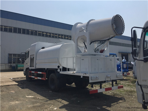 東風12噸抑塵車選配50米噴霧機達到除塵效果。霧炮機是根據風送原理,先使用進口高壓泵、微細霧化噴嘴將水霧化,再利用風機風量和風壓將霧化后的水霧送到較遠距離,使得水霧到達較遠距離同時能夠覆蓋更大面積,水霧與粉塵凝結后降落,從而達到降塵目的。